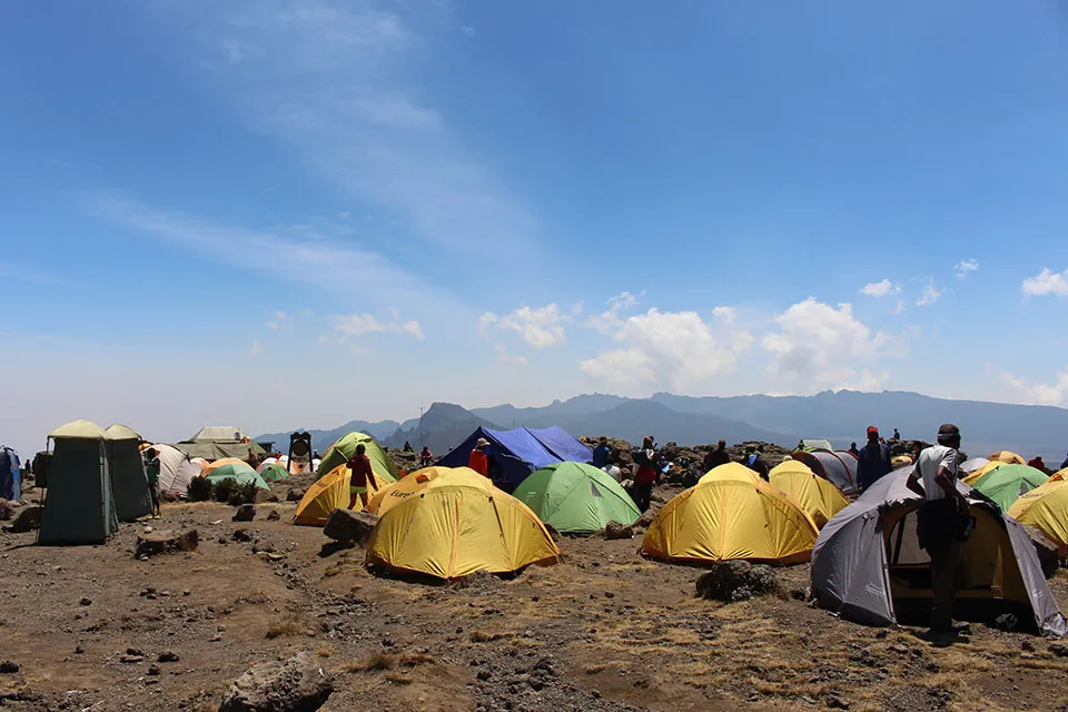 After breakfast, begin the hike to Barafu Camp. On the way to Barafu, view several of Kibo's glaciers as well as the junction that connects the descent route, Mweka, with the Machame trail. During day four, hike by the Heim, Kersten and Decken Glaciers. Although the trail to Barafu passes through alpine desert with little vegetation, Barafu Camp offers stunning views of Kibo and Mawenzi peaks. Try to sleep as soon as you finish dinner as you will awake before midnight for your summit hike.
